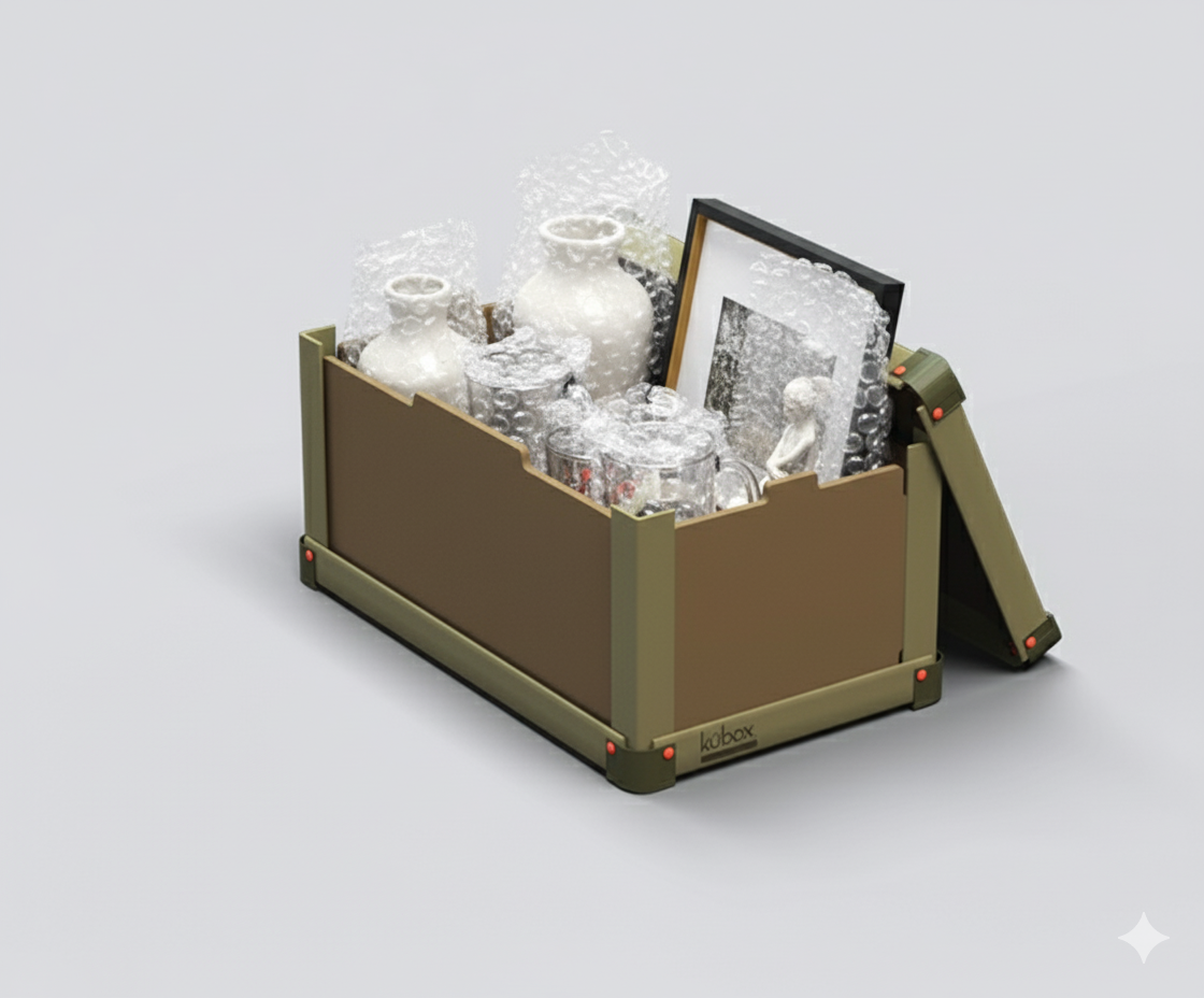 Use bubble wrap, foam, or other cushioning so items “float” in the center of the crate.